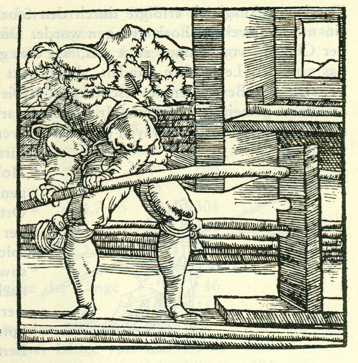 | Szálfegyver rúdját egyenesítő mester a Schwytzer Chronica-ból |
